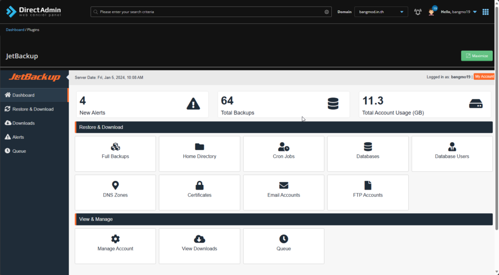 จากนั้นจะเข้าสู่หน้า Dashboard ของ JetBackup