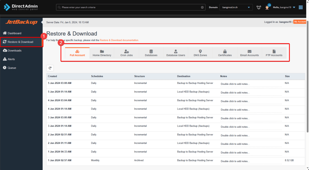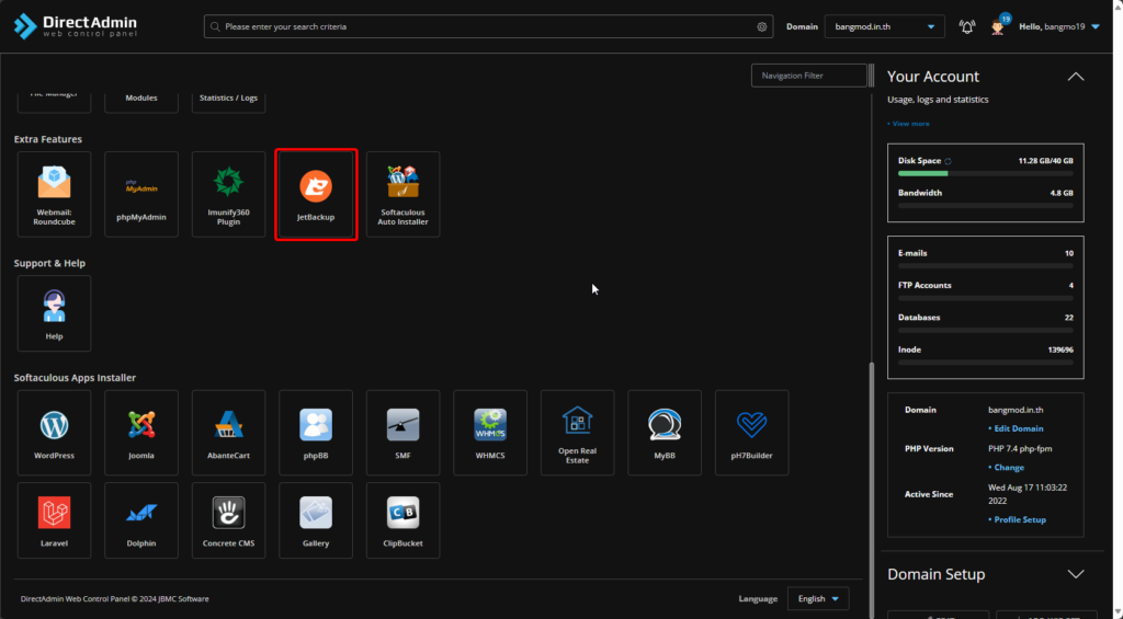 การ Backup อัตโนมัติของระบบ (JetBackup) จะทำการ Backup อัตโนมัติทุกวัน